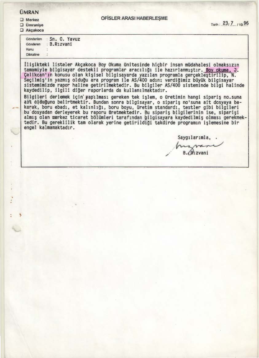 değişik yazılımlar gerçekleştirildi. Üretim takip ve izleme, stok kontrol, SCADA